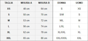 XS, S, M, L, XL, XXL